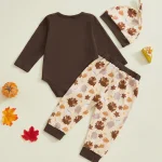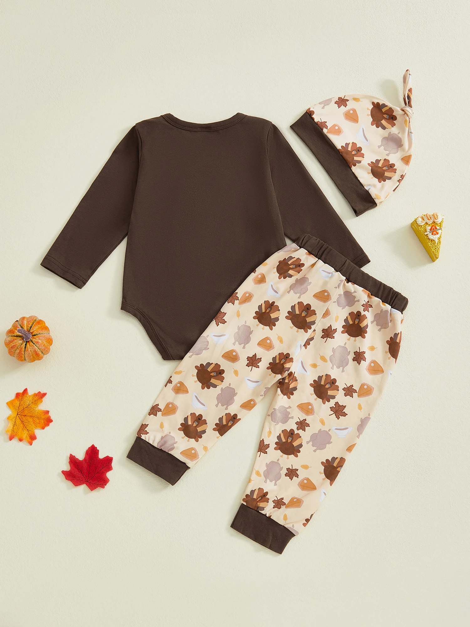 3Pcs Newborn Baby Boy Girl Outfits Thanksgiving Long Sleeve Turkey Rompers Joggers Pants Hat Set