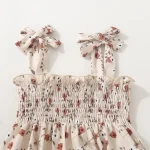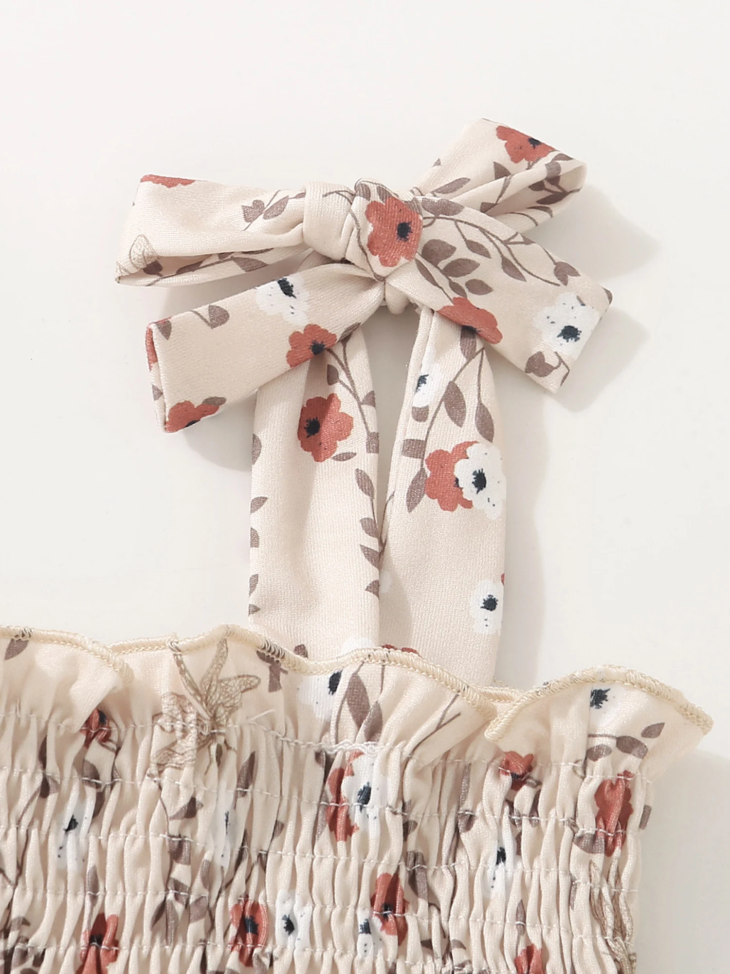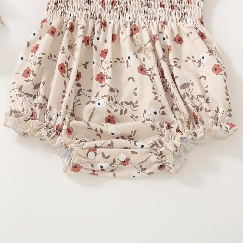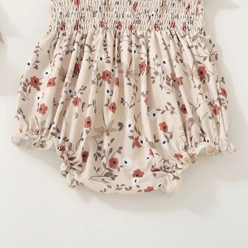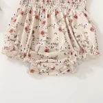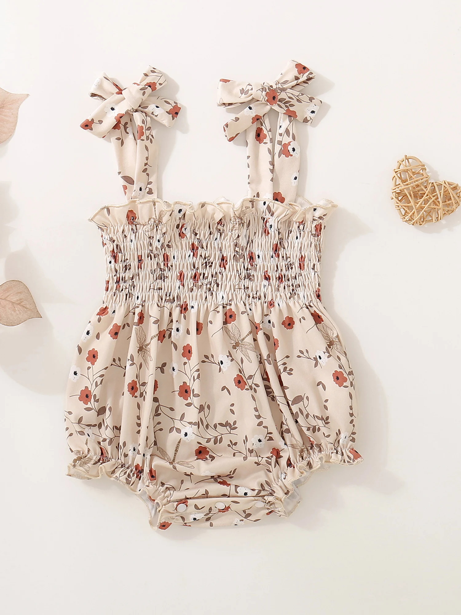 Baby Girl Summer Romper Sleeveless Tie Strap Floral Print Smocked Bodysuit Newborn Playsuit